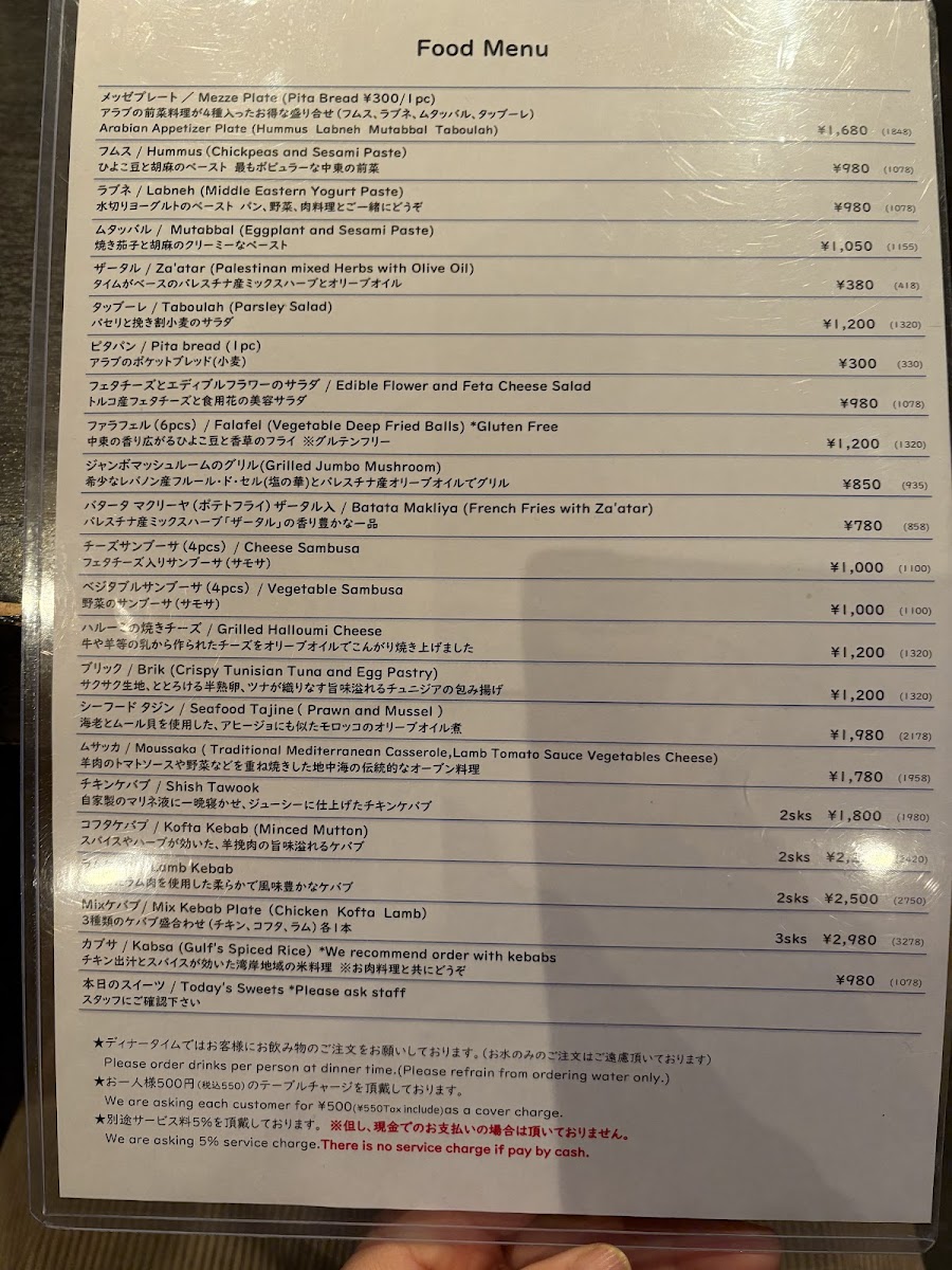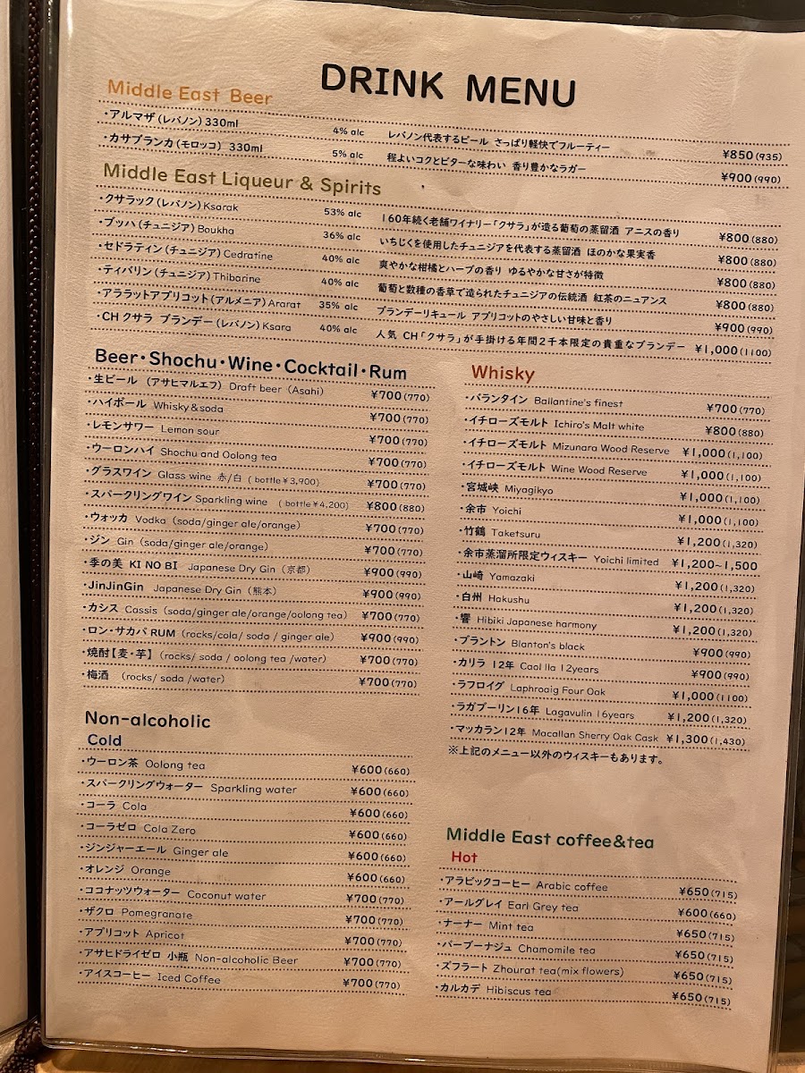 For those craving something more traditional, the ブリック is a savory pastry that wraps spiced fillings in a crispy, golden shell. Pair any of these dishes with a refreshing drink such as the アラビックコーヒー, a rich and aromatic Arabic coffee that’s the perfect end to a flavorful meal.