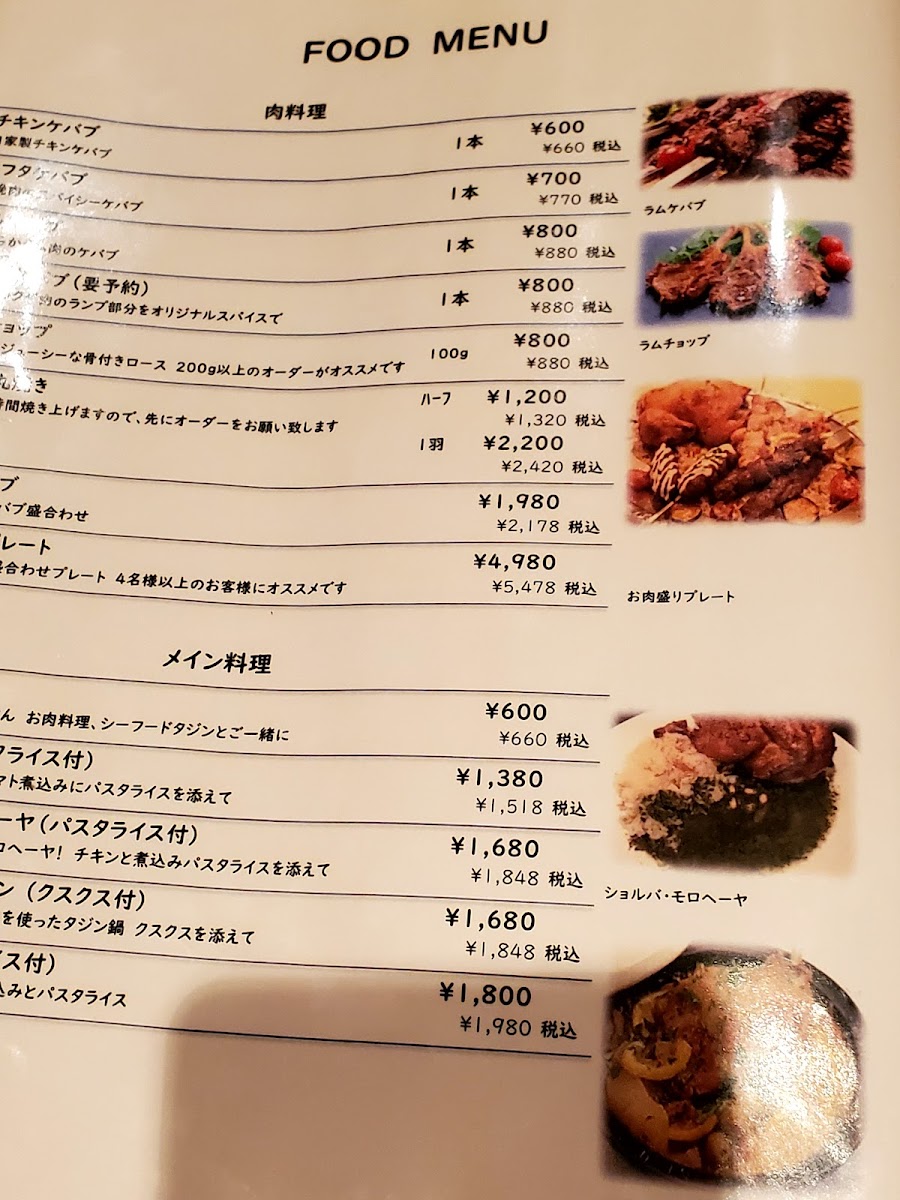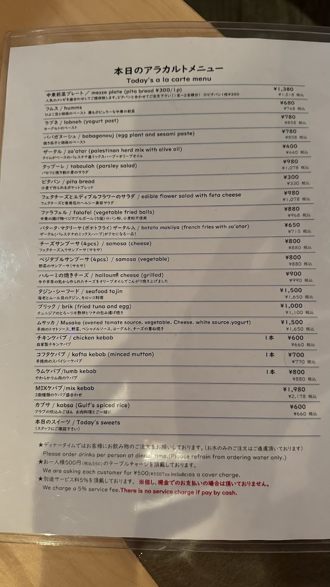 Rice lovers will enjoy the スパイスライス, a dish infused with aromatic spices that complement the other entrees on the menu. The Kebab with Rice is a hearty choice, with tender, grilled kebabs served alongside a generous portion of rice. Another popular item is the Chicken Kabsa, priced at 2500 yen, which features chicken served with a rich, spiced rice that's both satisfying and full of flavor.