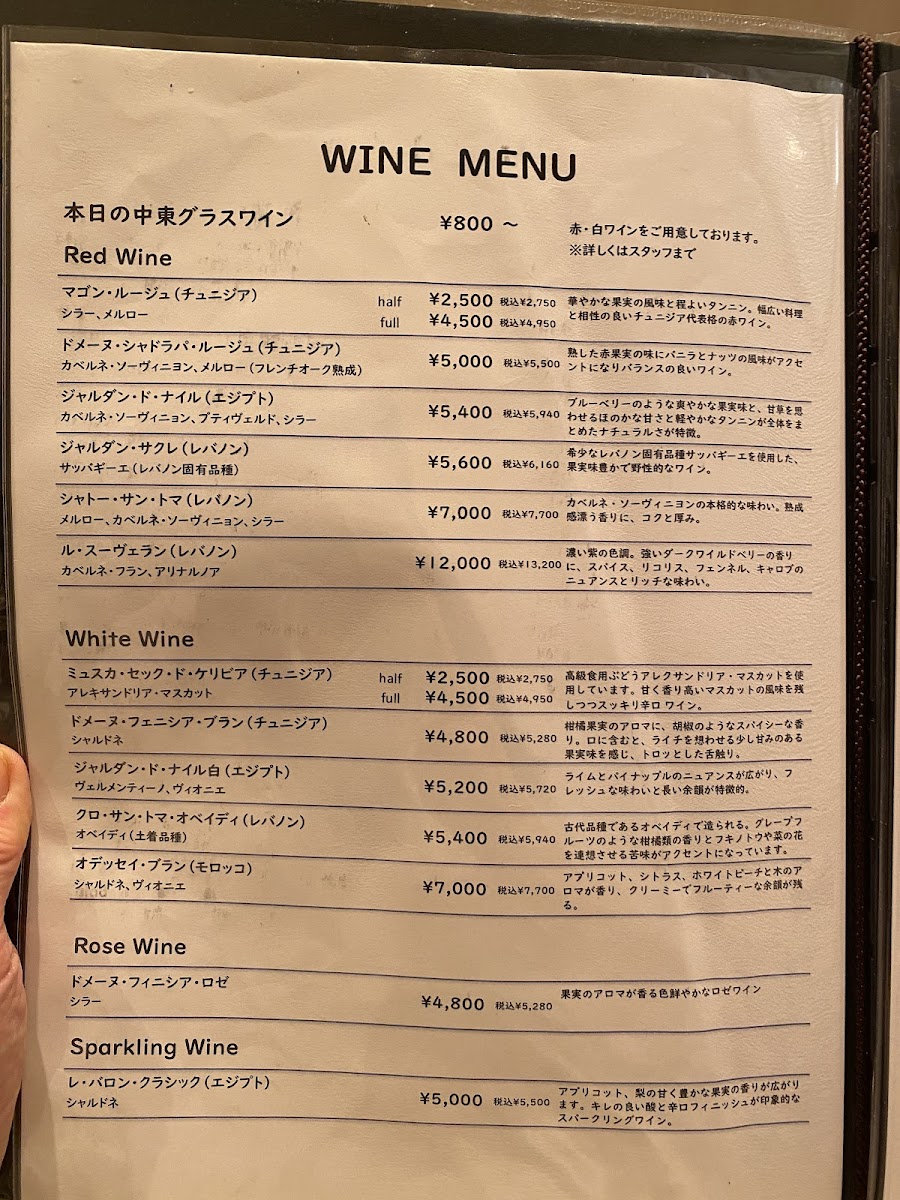 The wine selection at Mishmish Tokyo is equally impressive, with options like the グラスワイン 赤 and グラスワイン白, offering a glass of red or white wine to pair with your meal.